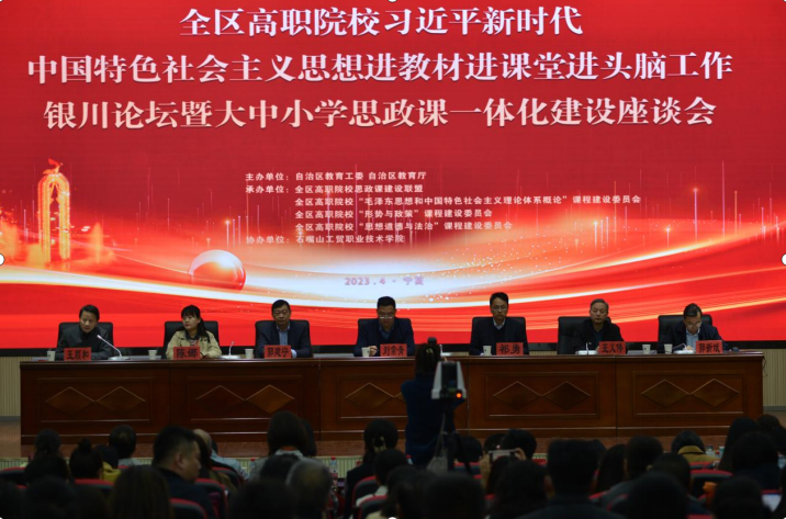 為全面貫徹落實(shí)黨的二十大精神,積極推進(jìn)寧夏高職院校習(xí)近平新時(shí)代中國(guó)特色社會(huì)主義思想進(jìn)教材進(jìn)課堂進(jìn)頭腦工作走深走實(shí),深化大中小學(xué)思政課一體化建設(shè)。4月7日至9日,在自治區(qū)教育工委、教育廳的統(tǒng)一部署和堅(jiān)強(qiáng)領(lǐng)導(dǎo)下,寧夏工商職業(yè)技術(shù)學(xué)院馬克思主義學(xué)院作為全區(qū)高職院校“毛澤東思想和中國(guó)特色社會(huì)主義理論體系概論”課程委員會(huì)建設(shè)單位,積極聯(lián)合高職院校思政課聯(lián)盟及“形勢(shì)與政策”“思想道德與法治”課程建設(shè)委員會(huì),在石嘴山工貿(mào)職業(yè)技術(shù)學(xué)院舉辦了全區(qū)高職院校習(xí)近平新時(shí)代中國(guó)特色社會(huì)主義思想進(jìn)教材進(jìn)課堂進(jìn)頭腦工作銀川論壇暨推進(jìn)大中小學(xué)思政課一體化建設(shè)工作座談會(huì)。來(lái)自全區(qū)高職院校、區(qū)屬中等職業(yè)學(xué)校、市縣教育局以及中小學(xué)思政課教師代表共計(jì)300人參加了座談會(huì)。