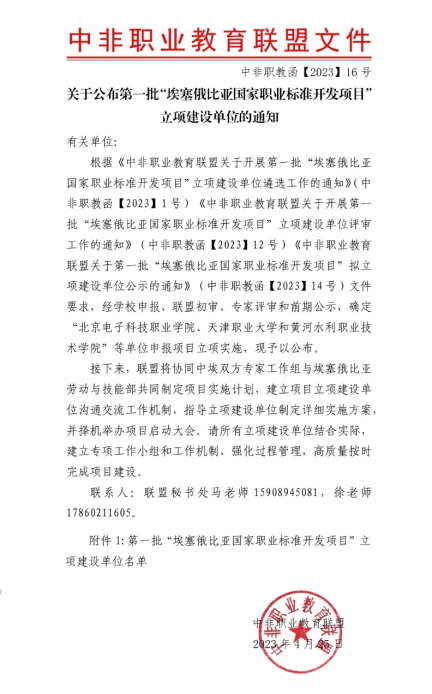 4月25日,中非職業教育聯盟公布第一批“埃塞俄比亞國家職業標準開發項目”建設單位,寧夏工商職業技術學院從全國219所高職高專院校中脫穎而出,電氣與控制工程學院團隊成功獲批電氣和機電設備維護技術員/工程師III級建設單位。