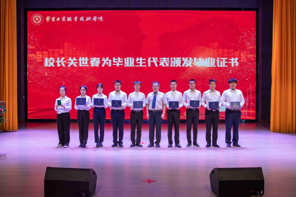 畢業典禮在莊嚴的國歌聲中拉開帷幕。副校長周桂寧宣讀了《關于準予2022屆崔宇欣等學生畢業(結業)的決定》《關于表彰2021屆優秀畢業生的決定》;校黨委書記陳曉軍、校長關世春分別為優秀畢業生、畢業生代表頒發了畢業證書、榮譽證書及紀念品。