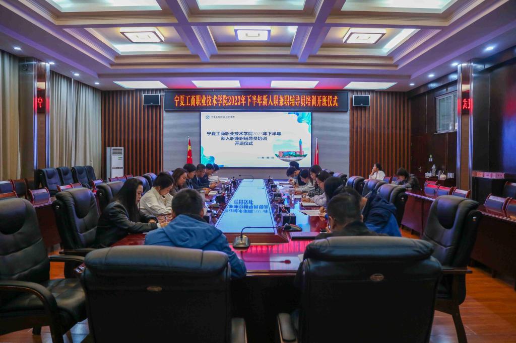 為進一步加強學校輔導員隊伍專業化職業化建設,切實推動學校雙高、提質培優項目建設,構建三全育人格局,著力提高新入職輔導員業務能力和綜合素質,10月12日上午,寧夏工商職業技術學院2023年下半年新入職兼職輔導員培訓開班儀式在明理樓第一會議室召開。黨委副書記寧曉娟出席,會議由學生處處長姚鵬主持,全體2023年下半年新入職兼職輔導員參會。