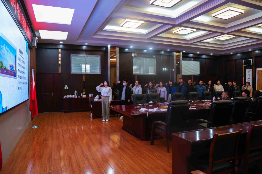 能源化工學院輔導員王鑫懿帶領新入職輔導員進行莊嚴宣誓,立志為培養社會主義合格建設者和可靠接班人而努力奮斗。