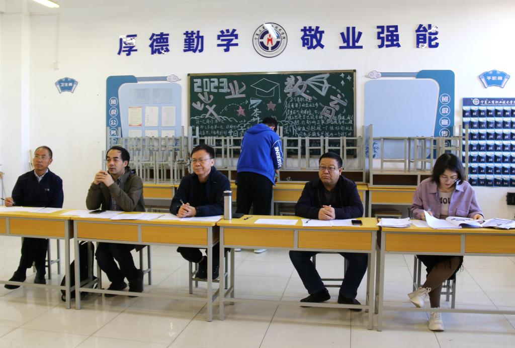 本次評審邀請了來自寧夏大學、北方民族大學、銀川科技學院、寧夏職業技術學院、寧夏建設職業技術學院等兄弟院校和校內專家組成評審專家組,分別對學校2023年度“課程思政”示范課和“課堂革命”典型案例進行了評審。會前,校黨委委員、副校長薛新巧蒞臨評審現場,看望評審專家,并對評審工作提出工作要求。評審現場,評審專家通過聽取匯報、查閱資料、提問等方式對2023年度“課程思政”示范課進行了申報立項、中期檢查、結題驗收評審;對2023年度“課堂革命”典型案例進行了評選。