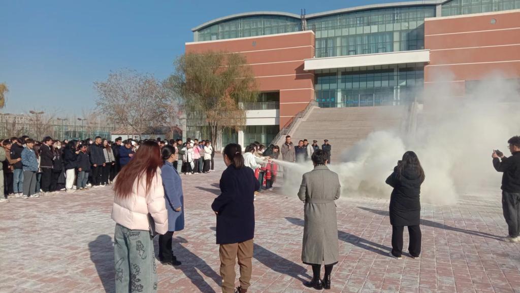 隨后,專家組織師生分批使用干粉滅火器進(jìn)行滅火實(shí)戰(zhàn)演練,提高師生的滅火動(dòng)手能力。