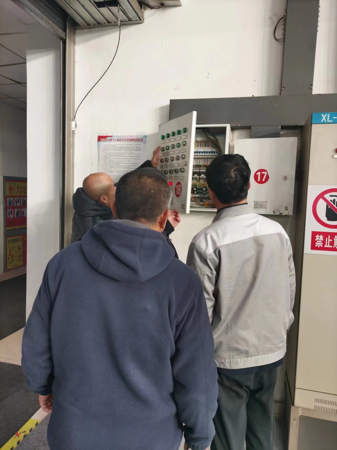 在對實訓基地進行檢查時,檢查組發現個別車間的安全出口指示牌不通電,滅火器配備不齊等問題。檢查組向車間的負責人提出整改要求,放假前務必整改到位。陳志懷提出,各實訓車間在寒假期間要有值班人員,每天對車間的安全進行巡查,防止出現安全事故。