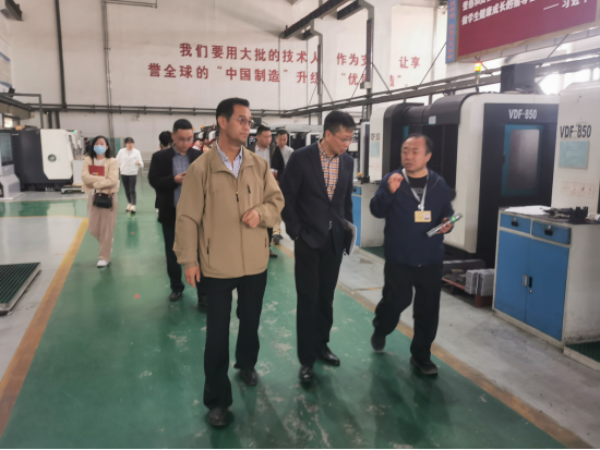 會(huì)議結(jié)束后,江蘇省鹽城市大豐區(qū)人力資源和社會(huì)保障局黨委書(shū)記葛余柏等一行人來(lái)學(xué)校實(shí)地走訪(fǎng)考察,學(xué)校招生與就業(yè)指導(dǎo)處處長(zhǎng)劉勇、副處長(zhǎng)羅娟及機(jī)械工程學(xué)院副院長(zhǎng)王向軍陪同參觀(guān)了學(xué)?,F(xiàn)代裝備制造實(shí)訓(xùn)中心。王向軍副院長(zhǎng)對(duì)現(xiàn)代裝備制造實(shí)訓(xùn)中心進(jìn)行了詳細(xì)的介紹,葛余柏書(shū)記對(duì)學(xué)校在實(shí)訓(xùn)建設(shè)、人才培養(yǎng)方面給予了充分肯定和高度評(píng)價(jià)。