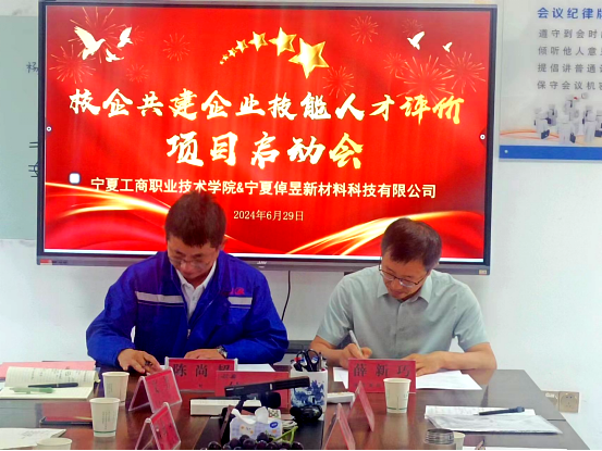 為充分發揮職業教育為社會、行業、企業服務的功能,進一步深化校企合作,推動產教融合,實現資源共享、優勢互補、互利共贏,6月29日,學院與寧夏倬昱新材料科技有限公司攜手舉辦“校企共建企業技能人才評價”項目啟動簽約會。