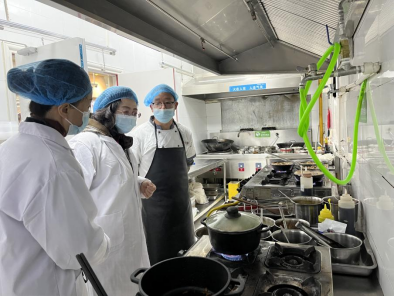 賈麗娟一行先后深入學院學生食堂后廚、倉儲區、留樣間等,重點查看了食材采購渠道、儲存條件、加工操作規范、餐具消毒、食品留樣(留樣量、標簽及記錄)等情況,仔細查閱了食材進貨臺賬等相關記錄,確保每一份食材來源可溯、質量可靠,對食堂工作人員的健康證明、操作規范等方面也進行了嚴格檢查,詳細詢問了食品安全管理和餐廳承包經營監管等內容,對檢查中發現的問題進行現場反饋,提出針對性整改意見。