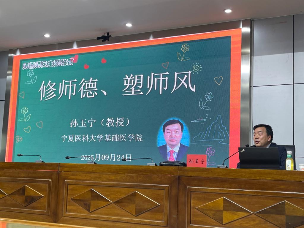 本次講座主題為《修師德塑師風》,主講人為寧夏醫科大學孫玉寧教授。孫教授以國家、人才與科技、教育、教師四者間的關系為脈絡,系統闡釋教師職業淵源、教育與國家、教師與師德及新時代師德建設要義等四個方面內容,并結合高校工作實際解讀《新時代高校教師職業行為十項準則》等文件精神。他強調教師應堅持以行修身、立德樹人,以高尚情操、堅定信念、扎實學識和仁愛之心引領學生成長。