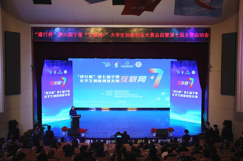 自治區教育廳副廳長王春秀、中國建設銀行寧夏區分行黨委委員 副行長劉鋒以及寧夏大學、北方民族大學、寧夏醫科大學、銀川能源學院、寧夏理工學院、寧夏工商職業技術學院校領導共同啟動第七屆寧夏“互聯網+”大學生創新創業大賽。