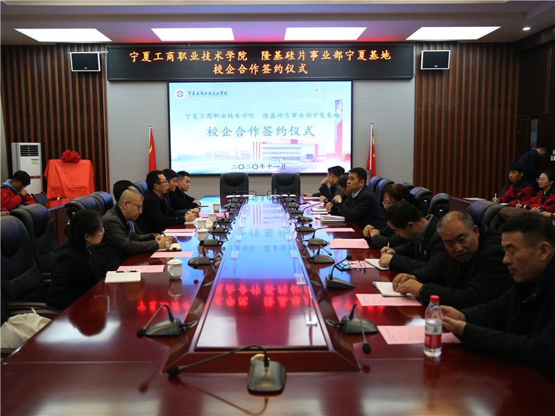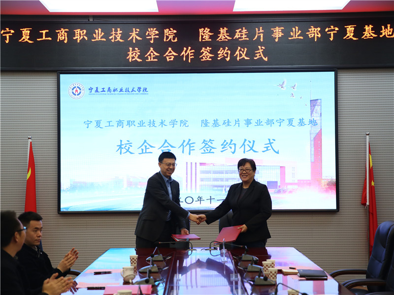 為進一步深化職業教育教學改革,全面推進產教深度融合,11月25日上午,“寧夏工商職業技術學院隆基硅片事業部寧夏基地校企合作簽約儀式”在五號教學樓二樓會議室舉行。學校校長關世春、副校長原秦英、周桂寧、隆基股份硅片事業部人力資源總監李嘉,人力資源經理劉海兵等領導,共同出席本次簽約儀式。