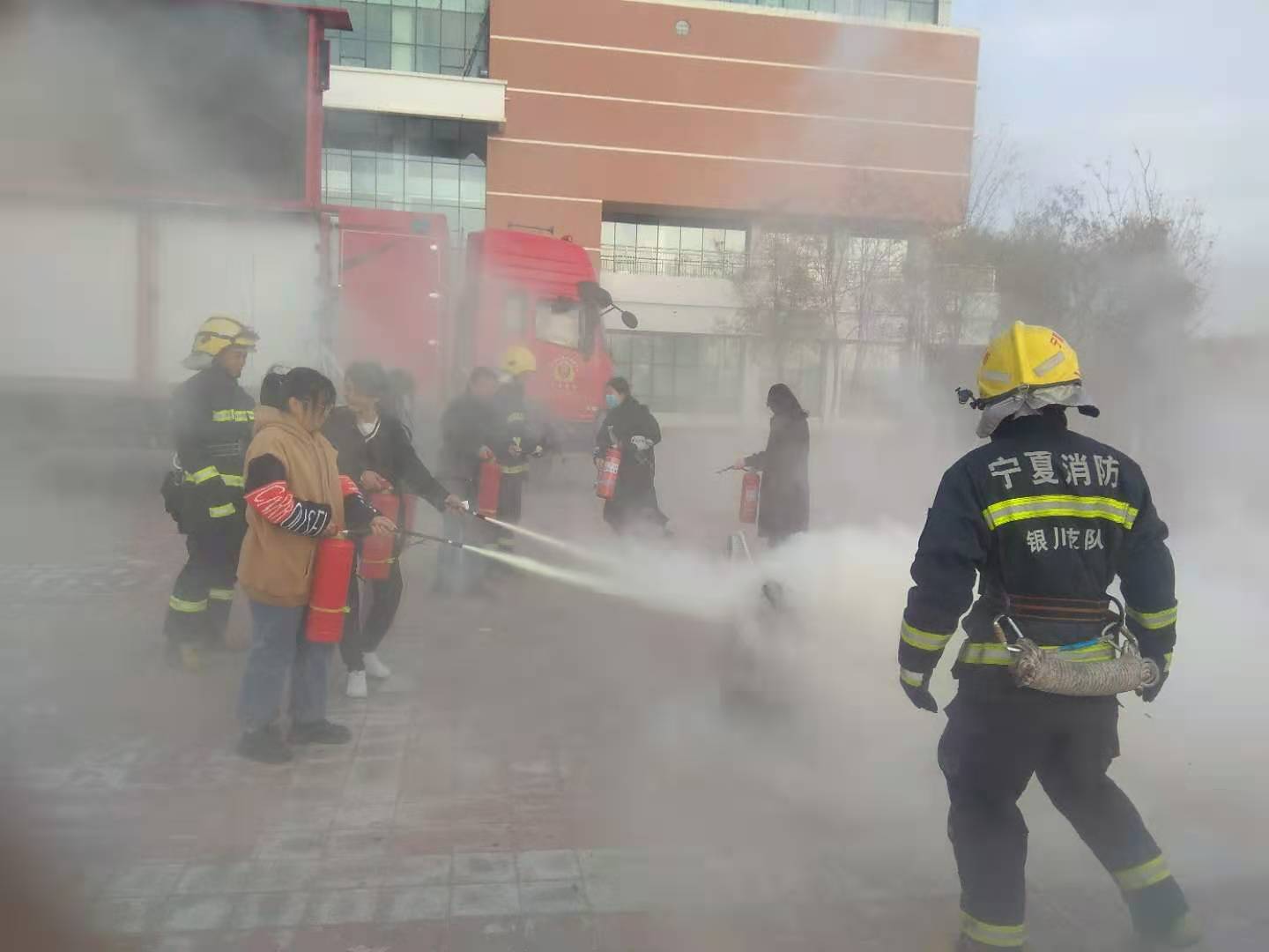 演練中,消防戰(zhàn)士向師生介紹了最近我國發(fā)生的大型火災(zāi),總結(jié)火災(zāi)發(fā)生的原因,向師生演示了小型滅火器的使用方法。為了增加師生對火災(zāi)的切身體驗(yàn),掌握逃生技巧,更深刻地認(rèn)識(shí)到火災(zāi)的危害性,消防隊(duì)出動(dòng)造煙車,讓全體學(xué)生穿越造煙車,模擬體驗(yàn)了火災(zāi)的逃生過程;最后,消防隊(duì)組織學(xué)生進(jìn)行小型滅火器實(shí)際滅火演練。為了強(qiáng)化學(xué)生的學(xué)習(xí)和演練效果,在演練活動(dòng)結(jié)束后,消防戰(zhàn)士又進(jìn)行了有獎(jiǎng)問答活動(dòng),凡是答對的學(xué)生均獲得了一份獎(jiǎng)品。