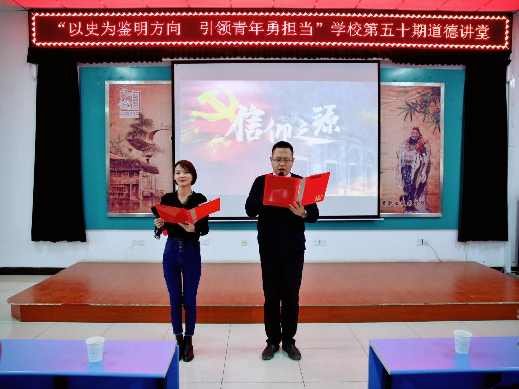 學好黨史、新中國史、改革開放史、社會主義發展史,是新時代青年學生的一門必修課。通過誦經典《信念永恒》、觀視頻《學四史——我是中國人》、《奔涌吧!后浪》和唱歌曲《我和我的祖國》等節目,引導青年學生在學思踐悟中堅定理想信念,在奮發有為中踐行初心使命。