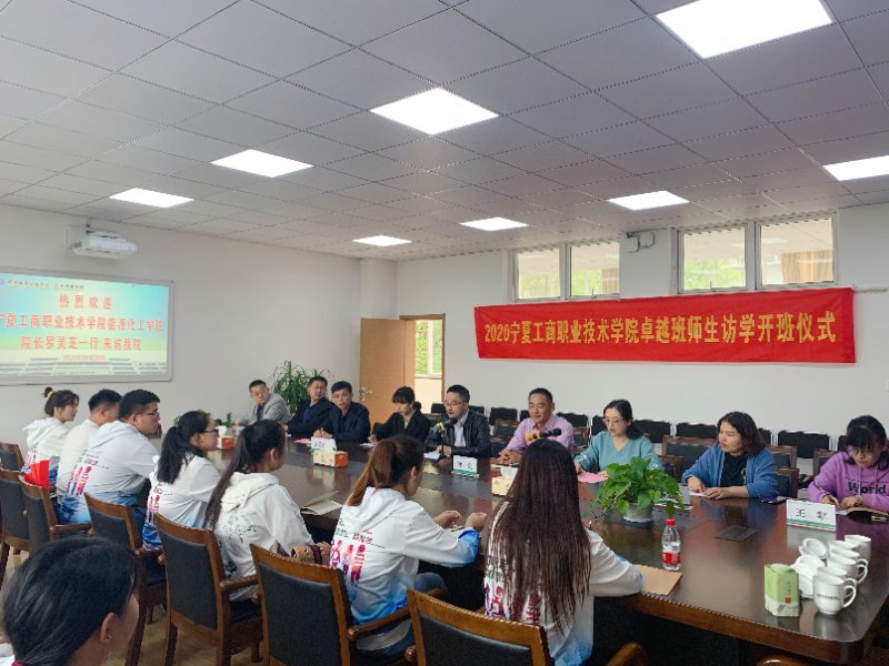 10月25日上午,能源化工學院2018級卓越班師生赴杭州職業技術學院(以下簡稱“杭職院”)開展交流學習。10月26日下午,交流學習開班儀式在杭職院生態健康學院舉行,杭職院專業建設指導處處長潘建峰、杭職院生態健康學院院長童國通、寧夏工商職業技術學院能源化工學院行政負責人羅靈芝出席會議,會議由杭職院生態健康學院副院長何藝主持,赴杭職院進行訪學的卓越班師生共20人參加此次開班儀式。