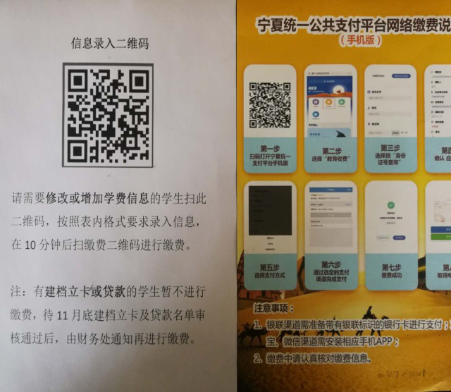 為了更好地服務(wù)新生,財(cái)務(wù)處提前積極與相關(guān)處室聯(lián)系溝通,并將新生信息逐一錄入系統(tǒng),以便新生能隨時(shí)登錄寧夏統(tǒng)一公共支付平臺(tái)進(jìn)行網(wǎng)上繳費(fèi),財(cái)務(wù)處今年還專門生成了信息錄入二維碼,方便學(xué)生現(xiàn)場(chǎng)修改或增加學(xué)費(fèi)信息,并在10分鐘后就可以將新增或修改信息錄入繳費(fèi)系統(tǒng),進(jìn)行網(wǎng)上繳費(fèi),保障了收費(fèi)工作的順利、有序進(jìn)行。