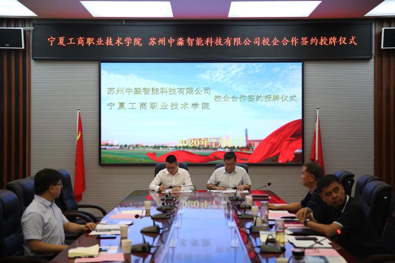 7月6日上午,寧夏工商職業(yè)技術(shù)學(xué)院與蘇州中淼智能科技有限公司校企合作簽約授牌儀式在5號樓二樓會議室舉行,儀式由副校長原秦英主持,校長關(guān)世春出席儀式并講話。