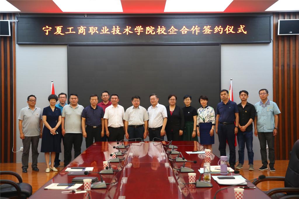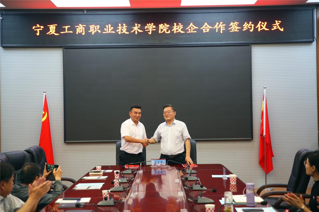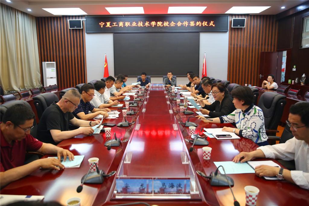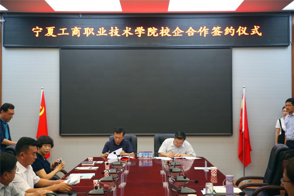 最后,學校與寧夏格瑞精細化工有限公司、貝利特化學股份有限公司簽訂校企合作協議,就成立“寧夏工商職業技術學院格瑞產業學院”、“寧夏工商職業技術學院貝利特產業學院”,以及在學校掛牌設立“寧夏格瑞精細化工有限公司人才培養基地”、“寧夏貝利特化學股份有限公司人才培養基地”等達成高度共識。