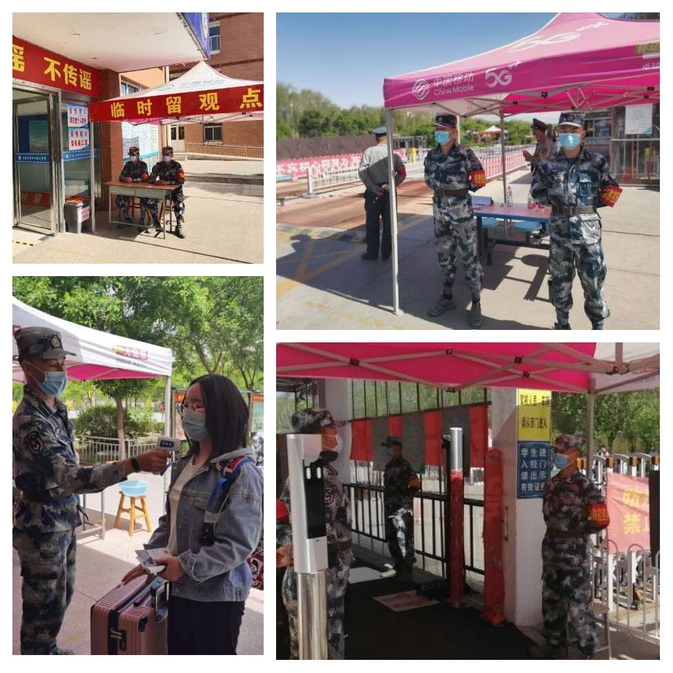 士官生作為首批返校學生,為同學們提供細心周到的服務,并在校園內站崗值勤、做好巡邏任務。
