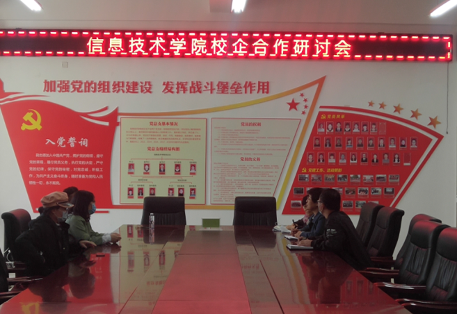 隨后,梁董事長到信息技術(shù)學(xué)院進(jìn)行了參觀調(diào)研,并與信息技術(shù)學(xué)院領(lǐng)導(dǎo)及骨干教師代表進(jìn)行了深入研討,雙方從產(chǎn)業(yè)學(xué)院、技術(shù)研發(fā)、人才培養(yǎng)等產(chǎn)教融合的各個方面探討了校企合作的可能性,最后梁董事長表示后續(xù)企業(yè)會派專人負(fù)責(zé),與信息技術(shù)學(xué)院就合作方式、實(shí)施形式等方面進(jìn)行深入探討。