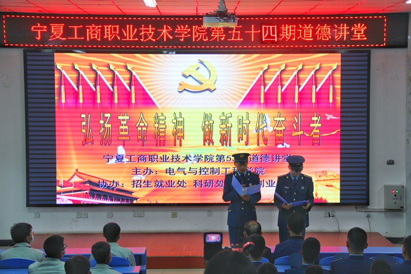 為推進學校師生思想道德建設,進一步鞏固文明校園創建成果,根據學校2021年“道德講堂”工作安排,第五十四期“道德講堂”于2021年4月29日下午在清風園一樓如期舉辦,本期道德講堂主題為“弘揚革命精神 做新時代奮斗者”,由電氣與控制工程學院黨總支主辦、招生與就業指導處、科研處、創新創業學院協辦,共300名師生參加了會議。