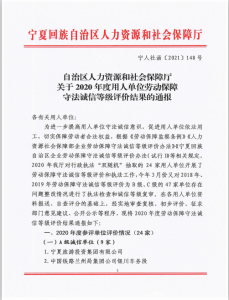 近日,自治區人力資源和社會保障廳公布了自治區勞動保障守法誠信等級評價結果,寧夏工商職業技術學院經復審由B級誠信單位晉升為A級誠信單位。