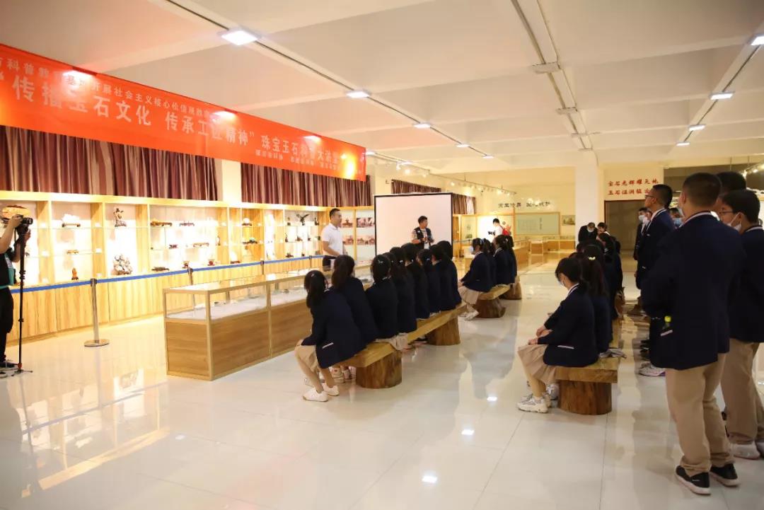 學生在科普教育基地、寶玉石標本教學實訓室認真觀看寶玉石標本