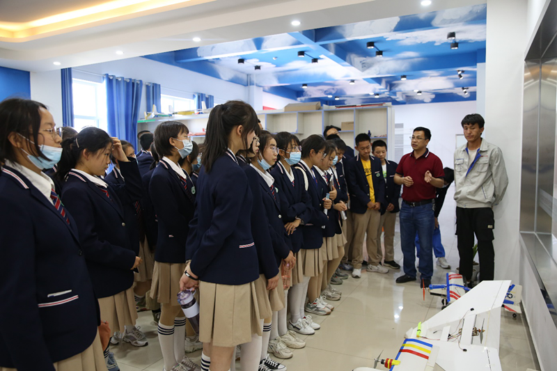 無人機專業教師現場向學生們講解各種類型的無人機