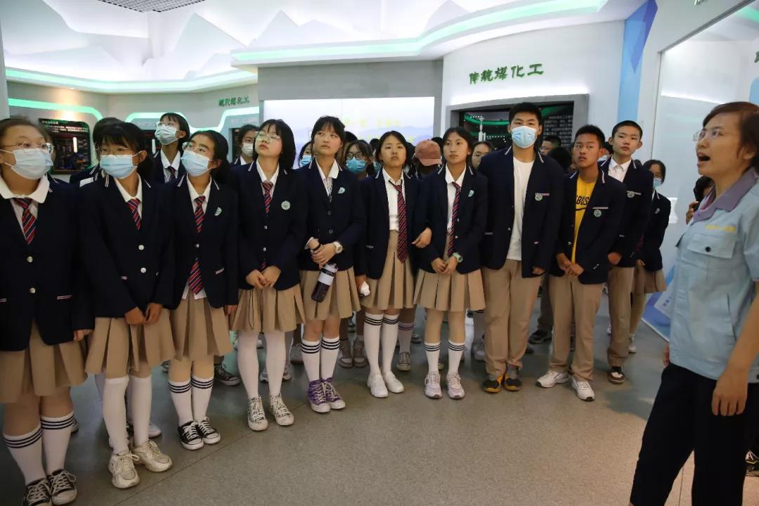 化工專業老師在學校能源化工展覽館給學生們講解能源化工發展歷史