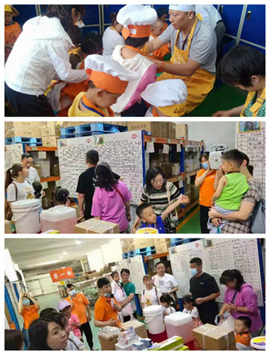 下午2點整,在“AILI·愛的禮物”中心工廠的多功能會場,家長和孩子們共同唱起《紅星閃閃》,親子活動正式拉開了帷幕。在講解員的帶領下,大家參觀了原料儲存庫、烘焙車間、裱花車間,最終到達制作館。在技師的指導下,爸爸媽媽們陪同孩子一同完成鮮奶蛋糕制作,經過密切配合、共同的努力,每個家庭擁有了一份特殊的“六一”禮物,這份禮物傳遞著濃濃愛意。隨后,家長和孩子們再次來到多功能會場,在中心工廠人員組織下開展親子互動游戲,現場洋溢著熱鬧、開心的快樂氣氛。