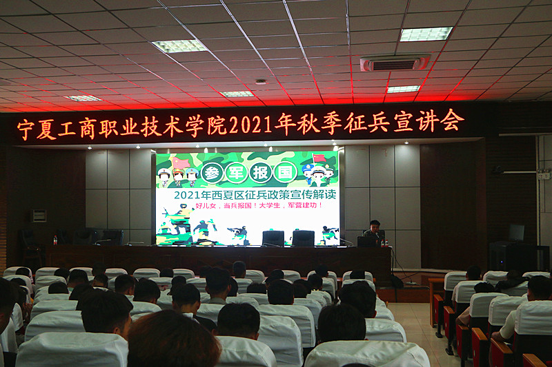 為進(jìn)一步落實(shí)全國(guó)實(shí)行“一年兩征”的征兵工作,加大本校征兵工作的宣傳力度,正確引導(dǎo)在校大學(xué)生積極響應(yīng)國(guó)家號(hào)召履行公民義務(wù),學(xué)生處聯(lián)合西夏區(qū)人民武裝部于6月9日、6月16日在學(xué)校清風(fēng)園報(bào)告廳組織開(kāi)展了兩場(chǎng)以“參軍報(bào)國(guó)、建功軍營(yíng)”為主題的征兵宣講活動(dòng)。