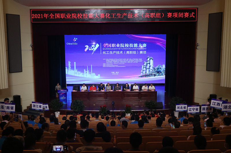 6月28日至30日,2021年全國職業院校技能大賽化工生產技術高職組賽項在寧夏工商職業技術學院舉辦。化工生產技術賽項執委會副主任、全國石油和化工職業教育教學指導委員會主任任耀生,化工生產技術賽項執委會副主任、中國化工教育協會副會長于紅軍,化工生產技術賽項專家組組長、徐州工業職業技術學院原黨委書記周立雪,化工生產技術賽項監督仲裁長、開封大學副校長趙輝,化工生產技術賽項裁判長、江西省化學工業學校教授梅鑫東,自治區教育廳職成處處長王玉林,寧夏工商職業技術學院黨委書記陳曉軍、校長關世春、副校長周桂寧和來自全國26個省、市、區的26所職業院校參賽隊領隊、指導教師、參賽選手等參加了閉幕式。寧夏工商職業技術學院副院長宋瑩主持閉幕式。