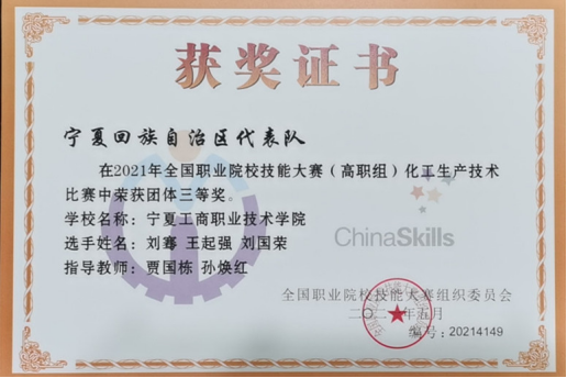 在2021年全國(guó)職業(yè)院校技能大賽中,我校獲得二等獎(jiǎng)1項(xiàng)、三等獎(jiǎng)4項(xiàng),占寧夏職業(yè)院校獲獎(jiǎng)總數(shù)的近50%,為寧夏在全國(guó)職業(yè)院校技能大賽中獲得好成績(jī)作出了重要貢獻(xiàn),再一次彰顯了學(xué)校的辦學(xué)實(shí)力和教育教學(xué)水平,也讓寧夏工商職業(yè)技術(shù)學(xué)院在全國(guó)職業(yè)教育的競(jìng)技平臺(tái)上一展風(fēng)采。旅游管理學(xué)院宋國(guó)慶、楊小萍兩位老師指導(dǎo)學(xué)生王斐、王樂樂、宋逸平、楊磊團(tuán)隊(duì)在高職組烹飪賽項(xiàng)中獲得二等獎(jiǎng)第一名,總成績(jī)排名第四;孫賀峰老師指導(dǎo)的馬茹同學(xué)獲高職組導(dǎo)游服務(wù)賽項(xiàng)三等獎(jiǎng)。電氣與控制工程學(xué)院的王志鑫和張立升兩位老師指導(dǎo)的學(xué)生馬博和周子玉在高職組工業(yè)機(jī)器人技術(shù)應(yīng)用賽項(xiàng)中獲得三等獎(jiǎng);胡海偉和龔立峰兩位老師指導(dǎo)的學(xué)生佟達(dá)、金星和白浩團(tuán)隊(duì)在高職組光伏電子工程的設(shè)計(jì)與實(shí)施賽項(xiàng)中獲得三等獎(jiǎng)。能源化工學(xué)院老師賈國(guó)棟、孫煥紅指導(dǎo)的學(xué)生王起強(qiáng)、劉騫、劉國(guó)榮團(tuán)隊(duì)在高職組化工生產(chǎn)技術(shù)賽項(xiàng)團(tuán)體三等獎(jiǎng)。
