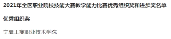 根據自治區教育廳2021年全區職業院校技能大賽教學能力比賽獲獎名單公示。本屆比賽對全區各職業院校推薦的234件參賽作品進行了網絡初評和現場決賽評比,中職組、高職組共評選一等獎22個、二等獎36個、三等獎59個、優秀組織獎6個、進步獎2個。我校榮獲優秀組織獎、高職組一等獎5項、二等獎6項、三等獎2項。本次大賽共推選出10個參賽作品參加全國職業院校技能大賽教學能力比賽,我校5個團隊作品成功入圍!