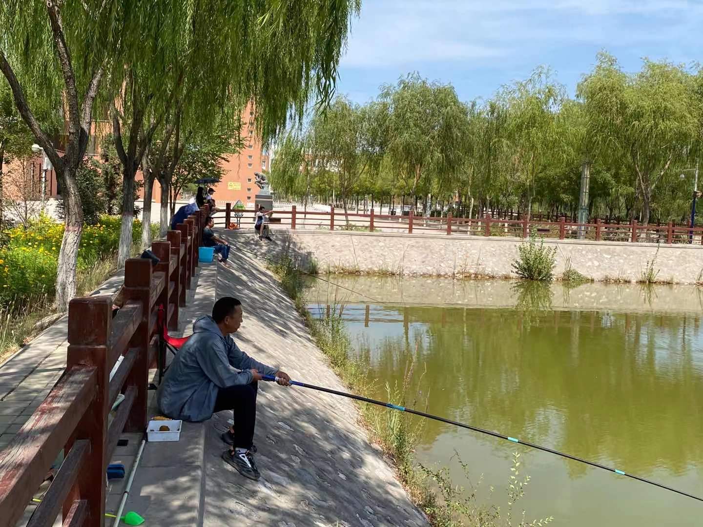 秋陽高照日,正是垂釣時。校園景觀湖波光粼粼,楊柳依依,令人心曠神怡。老師們圍繞在景觀湖邊,撒餌拋竿,愜意交流,魚竿起伏處,便是魚兒翻飛,歡快的笑聲洋溢在校園。