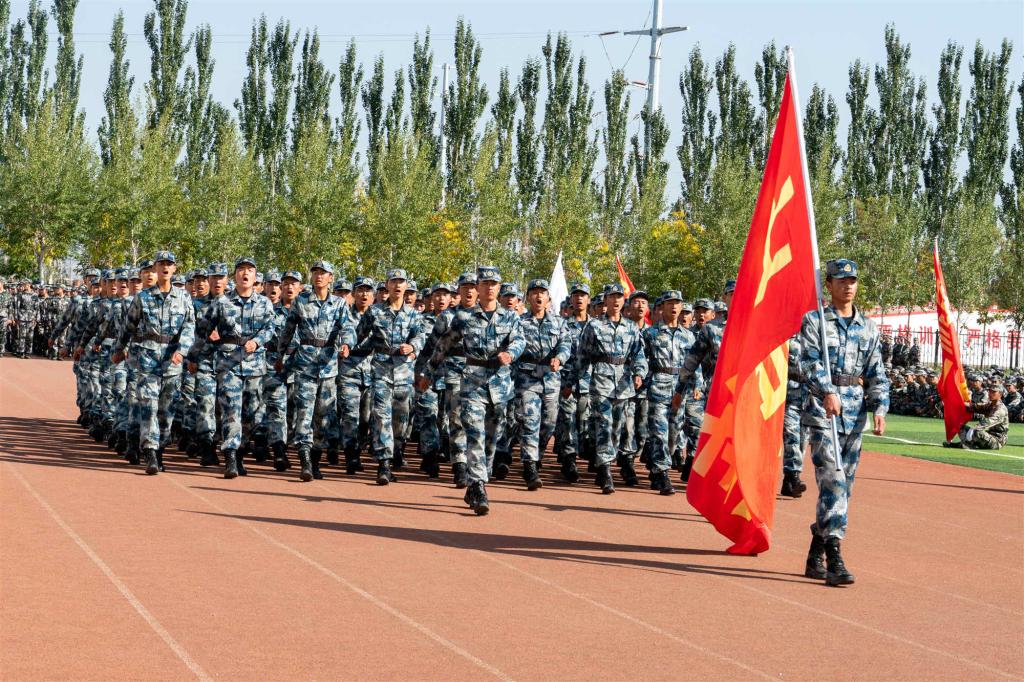 在莊嚴嘹亮的國歌聲中,軍訓會操正式拉開序幕。9個分列式方隊踏著整齊的步伐,喊著氣勢磅礴的口號,依次從主席臺前走過。方陣行進間,同學們鏗鏘有力的口號聲震破云霄,透出軍人堅毅果敢氣質(zhì),彰顯工商學子昂揚向上的精神風貌。隨后,整齊劃一的會操表演,充分展示了這11天的訓練成果,,展示出新時代工商青年踐行“請黨放心、強國有我”鏗鏘誓言的熾熱決心。