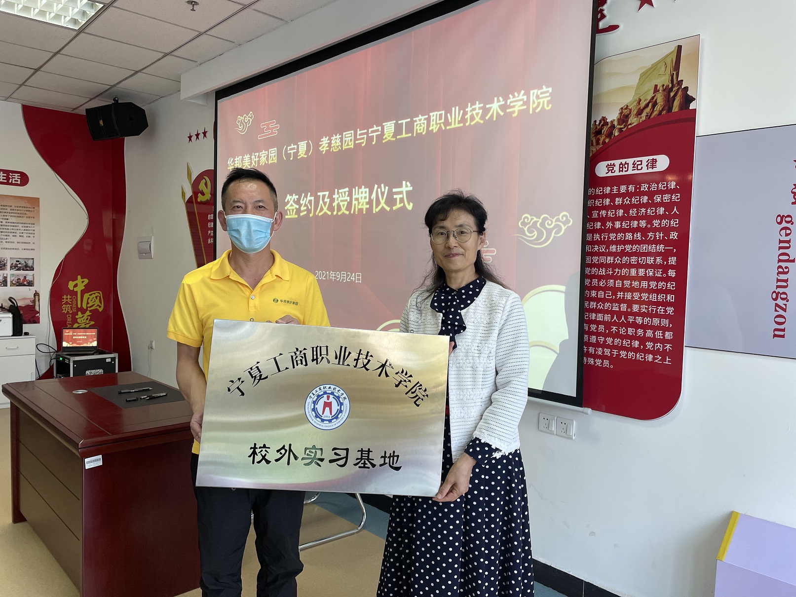 9月24日下午,學校與華邦美好家園寧夏孝慈園校企合作簽約掛牌儀式在企業會議室隆重舉行。副校長宋瑩、寧夏老年人服務中心(寧夏民政行業職業技能培訓中心)主任趙琨、華邦美好家園寧夏孝慈園院長郝紅平出席儀式。