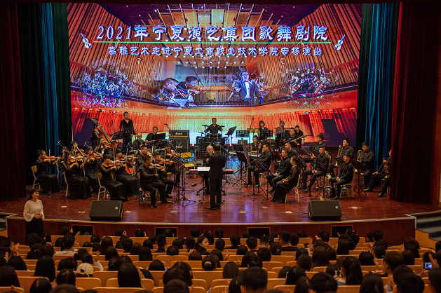 為提高學生審美和人文素養,讓高雅藝術進校園活動成為學校美育培根鑄魂的重要載體,2021年9月29日,校團委特邀請寧夏演藝集團歌舞劇院交響樂團走進學校,為師生帶來了一場精彩的專場音樂會。