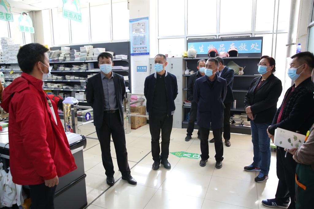 在學校超市,校領導詳細詢問了超市各類物資的儲備供應情況和商品價格,要求經營業主一定要履行好社會責任,保證供給充足、價格穩定,確保師生基本生活物資不脫銷、不斷檔、不漲價。要繼續加強超市日常內部管理,嚴格落實疫情防控措施,認真做好規范經營、消毒清潔等工作。