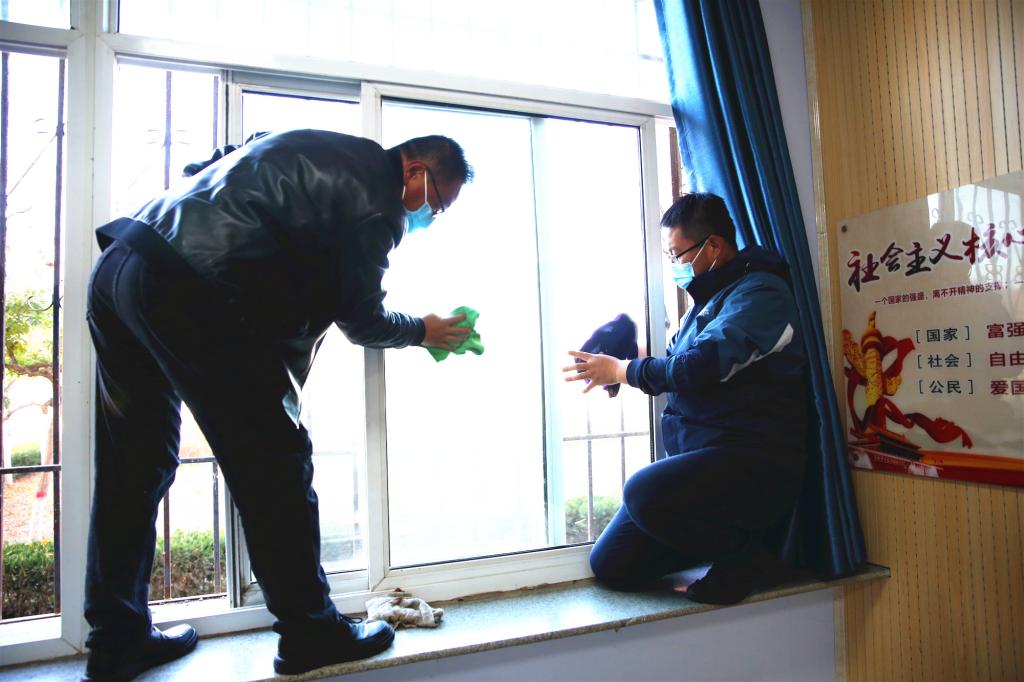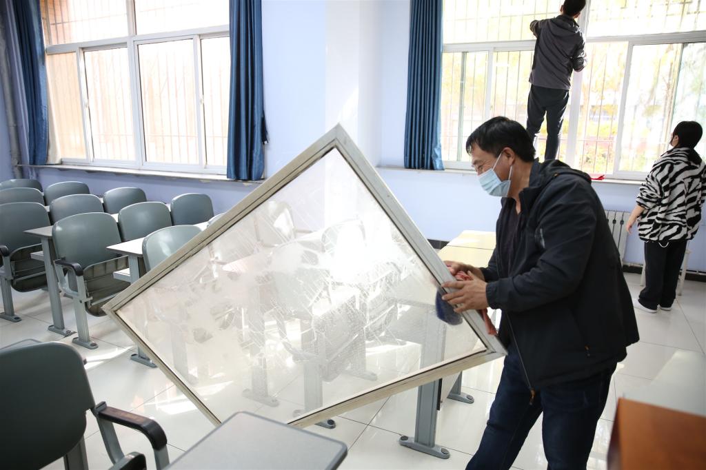 活動(dòng)開(kāi)始后,大家熱情高、干勁足,校領(lǐng)導(dǎo)與師生共同清洗教室紗窗、擦玻璃、擦課桌、清理衛(wèi)生死角,個(gè)個(gè)忙得不亦樂(lè)乎,師生們勞動(dòng)的身影在教學(xué)樓里形成一道亮麗的風(fēng)景線。
