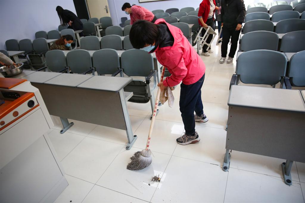 為建設(shè)美麗校園,營(yíng)造干凈整潔的學(xué)習(xí)生活環(huán)境。11月4日下午,學(xué)校黨委書(shū)記陳曉軍、副校長(zhǎng)宋瑩、寧曉娟帶領(lǐng)學(xué)生處黨支部、教務(wù)處、科研處聯(lián)合黨支部、旅游管理學(xué)院黨總支等600余名師生,對(duì)學(xué)校公共教學(xué)樓的教室進(jìn)行了認(rèn)真清掃。