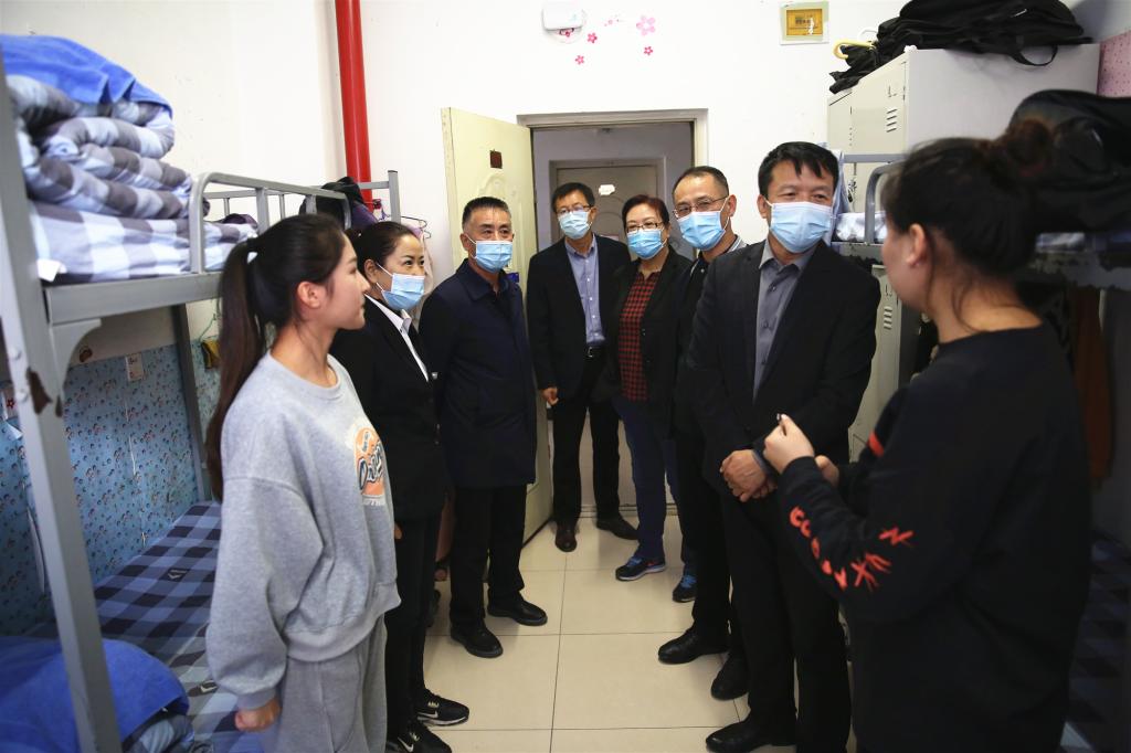 在學(xué)生宿舍,學(xué)校領(lǐng)導(dǎo)實(shí)地了解學(xué)生封校后的學(xué)習(xí)生活情況,為學(xué)生送去關(guān)心和問(wèn)候。校黨委書記陳曉軍表示,當(dāng)前疫情防控工作取得階段性明顯成效,但零新增不等于零風(fēng)險(xiǎn),全體同學(xué)們要持續(xù)增強(qiáng)個(gè)人防護(hù)意識(shí),切實(shí)遵守校園封閉式管理,通過(guò)多種方式上好線上線下課程,積極參加社團(tuán)活動(dòng),鍛煉身體,吃好三餐,齊心協(xié)力共同筑牢校園疫情防線。校領(lǐng)導(dǎo)暖心的話語(yǔ)、親切的關(guān)懷慰問(wèn)讓同學(xué)們倍感溫馨,表示將以積極的態(tài)度、抖擻的精神、高昂的狀態(tài)投入到這段特殊時(shí)期的學(xué)習(xí)生活中。