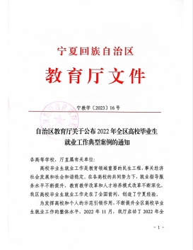 近日,自治區教育廳印發了《關于公布2022年全區高校畢業生就業工作典型案例的通知》,我校榮獲“就業工作典型示范高校”榮譽稱號。