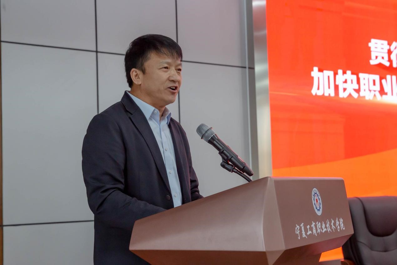 學(xué)校黨委書(shū)記陳曉軍代表寧夏工商職業(yè)技術(shù)學(xué)院做表態(tài)發(fā)言。他提出,寧夏工商職業(yè)技術(shù)學(xué)院作為全區(qū)首批推進(jìn)建設(shè)職業(yè)本科的院校之一,下一步將加快建設(shè)進(jìn)程,力爭(zhēng)打造寧夏職業(yè)本科教育的“工商樣板”,切實(shí)推動(dòng)區(qū)域經(jīng)濟(jì)社會(huì)高質(zhì)量發(fā)展。