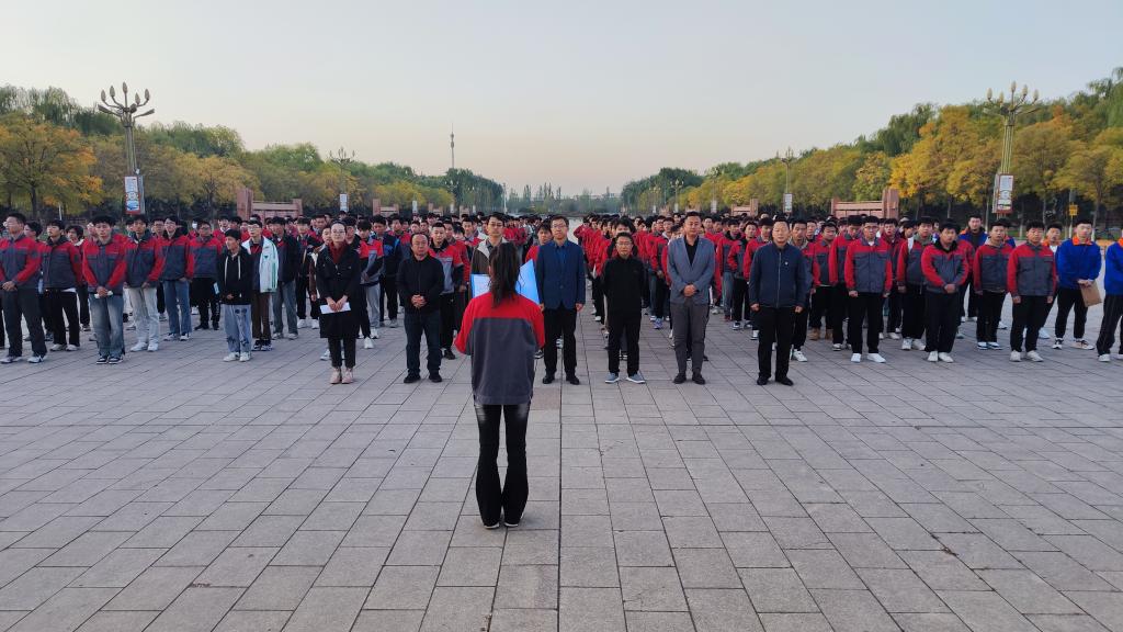 隨后,薛新巧副校長為全體師生進行了開學(xué)第一課暨國旗下講話。他指出,本次活動同學(xué)們守時守紀(jì),體現(xiàn)了當(dāng)代大學(xué)生的文明素養(yǎng),同時向全體學(xué)生提出四點希望:一是希望同學(xué)們眼中有星光,做胸懷家國的追夢者,二是希望同學(xué)們腳下有方向,做堅韌不拔的力行者,三是希望同學(xué)們手中有本領(lǐng),做技能成才的奮進者,四是希望同學(xué)們胸中有丘壑,做守法守規(guī)的傳承者。薛校長勉勵大家,在發(fā)展的時代方位中找準(zhǔn)自身定位,將自己的人生際遇與國家民族的命運前途相連,擔(dān)負(fù)“天降大任于斯人”的時代使命,不斷挑戰(zhàn)自我、突破自我,以奮斗者的姿態(tài)和強國有我的擔(dān)當(dāng),在青春的賽道上奮力奔跑,爭取跑出當(dāng)代青年的最好成績。