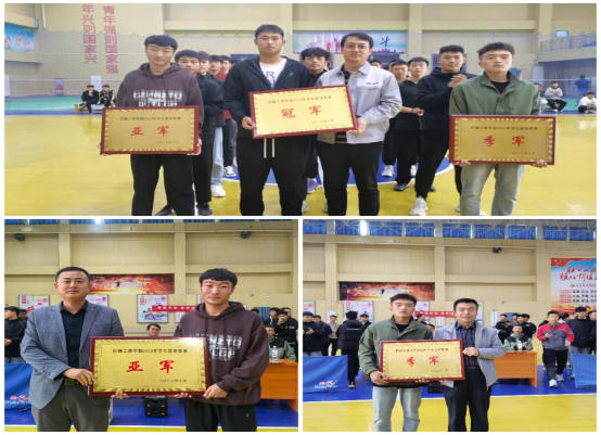 各班運動員在賽場上奮力比拼,通過激烈角逐,最終2022級機械制造及自動化1班、2022級智能網聯汽車技術班、2023級汽車檢測與維修技術2班分別獲得冠、亞、季軍。10月18日,在學校體育館舉行頒獎儀式,學院黨總支書記楊志國、專職黨總支副書記買學斌、學工辦主任李志軍分別為獲勝班級頒獎。