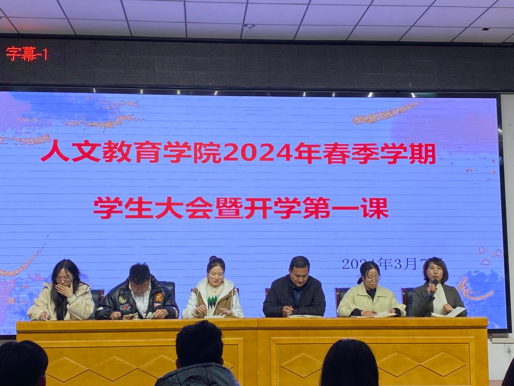 為落實學校春季開學工作要求,切實維護校園安全穩定,3月7日下午,人文教育學院春季學期全體學生大會暨“開學第一課”在清風園一樓報告廳進行。人文教育學院全體學工人員和學生參加會議,學工辦主任劉愛琴主持會議。