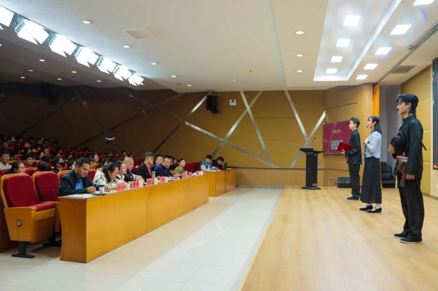 4月23日下午,由圖書(shū)館主辦,各二級(jí)學(xué)院協(xié)辦的“尋聲浩瀚經(jīng)典 賡續(xù)中華文脈”——鑄牢中華民族共同體意識(shí)主題誦讀暨“工商朗讀者”第12期誦讀大賽決賽及2023年度“閱讀之星”“書(shū)香班級(jí)”表彰儀式在圖書(shū)館報(bào)告廳舉辦。學(xué)院副校長(zhǎng)陳志懷出席活動(dòng),各二級(jí)學(xué)院200余名師生代表現(xiàn)場(chǎng)觀看了比賽,比賽評(píng)委由各二級(jí)學(xué)院領(lǐng)導(dǎo)、教師擔(dān)任。