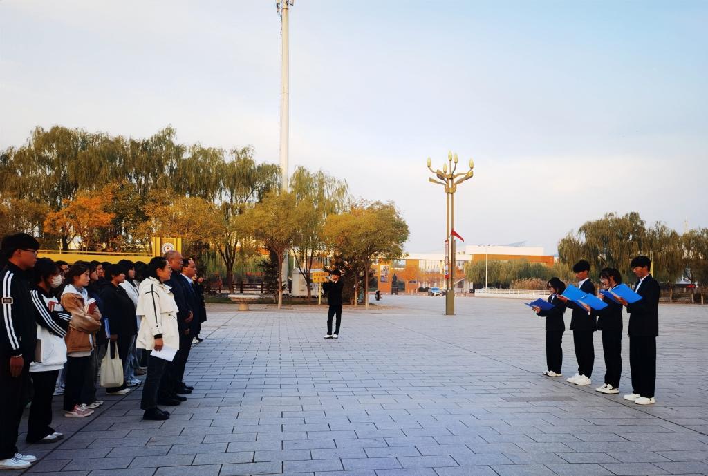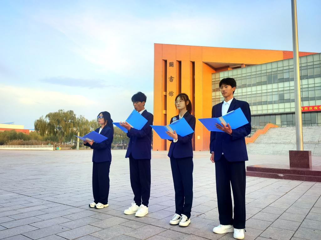 國歌響起,伴著旭日東升的太陽,國旗護衛隊將國旗緩緩升起。學生代表以飽滿的熱情朗誦了《賡續紅色血脈,傳承長征精神》,表達了對先輩英烈的緬懷和對長征精神的敬仰,同時也表達了自己將繼承并發揚長征精神的決心。