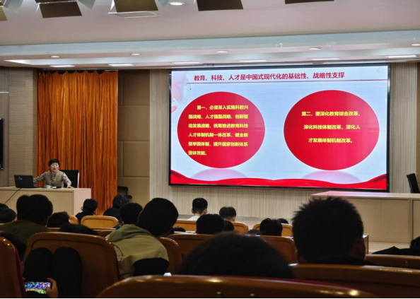 程文香老師向同學(xué)們介紹了黨的二十屆三中全會的召開時間背景及會議精神。她表示,這是在以中國式現(xiàn)代化全面推進強國建設(shè)、民族復(fù)興偉業(yè)的關(guān)鍵時期召開的一次具有里程碑意義的重要會議。程文香老師還強調(diào)了同學(xué)們要深入學(xué)習(xí)領(lǐng)會黨的二十屆三中全會精神,增強使命感責(zé)任感緊迫感,把握科學(xué)的世界觀和方法論。青年興則國家興,青年強則國家強。與會師生一致表示,將更加緊密地團結(jié)在以習(xí)近平同志為核心的黨中央周圍,深入學(xué)習(xí)貫徹黨的二十屆三中全會精神,增強理想信念,將個人發(fā)展融入國家戰(zhàn)略需求,錨定航向、接續(xù)奮斗,在新時代新征程的實踐中貢獻青春力量。