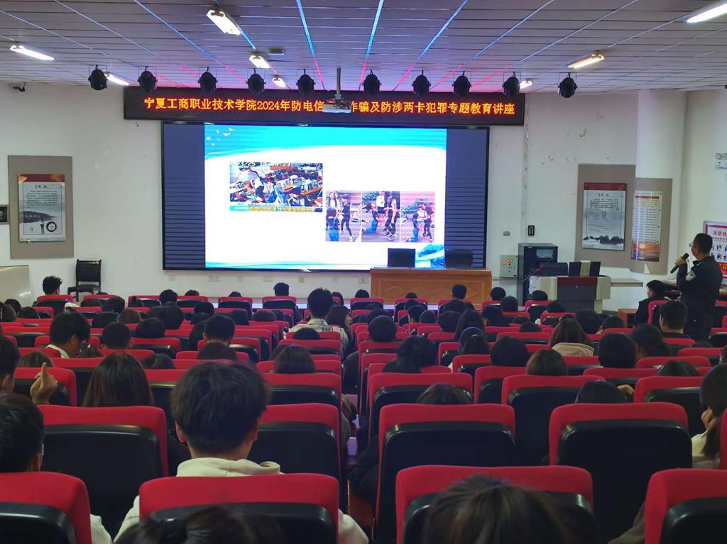 為全面提升學生的安全意識和對各類風險的防范能力,預防在校生涉及“兩卡犯罪”,保護好學生的人身財產安全,10月28日,保衛處和關心下一代工作委員會共同舉辦了一場防電信網絡詐騙暨防“涉兩卡犯罪”專題講座,講座由西夏區公安分局反詐民警王輝警官主講,能源化工學院全體新生參加。