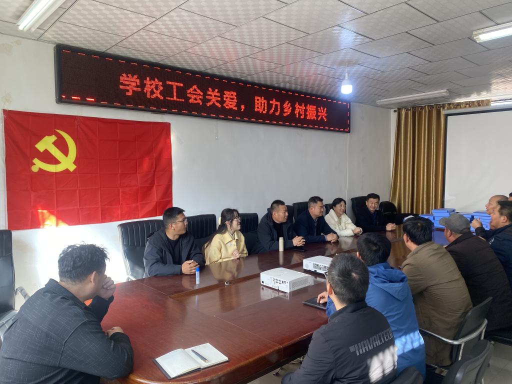 活動中,前往慰問的同志們與駐村工作隊和村領導班子舉行了座談會,詳細了解聽取了駐村工作隊開展新農村建設工作的情況和大家駐村生活的情況。工會常務副主席滕興敏向駐村工作隊隊員轉達了學院黨委對駐村工作隊的關懷和問候,并勉勵大家要做到“村情、政策、人情”三通,希望駐村工作隊繼續發揚吃苦耐勞的優良作風,更好發揮駐村工作隊在鞏固拓展脫貧攻堅成果、全面推進鄉村振興工作中的積極作用。慰問組為在場的駐村工作隊隊員每人發放了慰問品,此次慰問物資由學校工會提供。